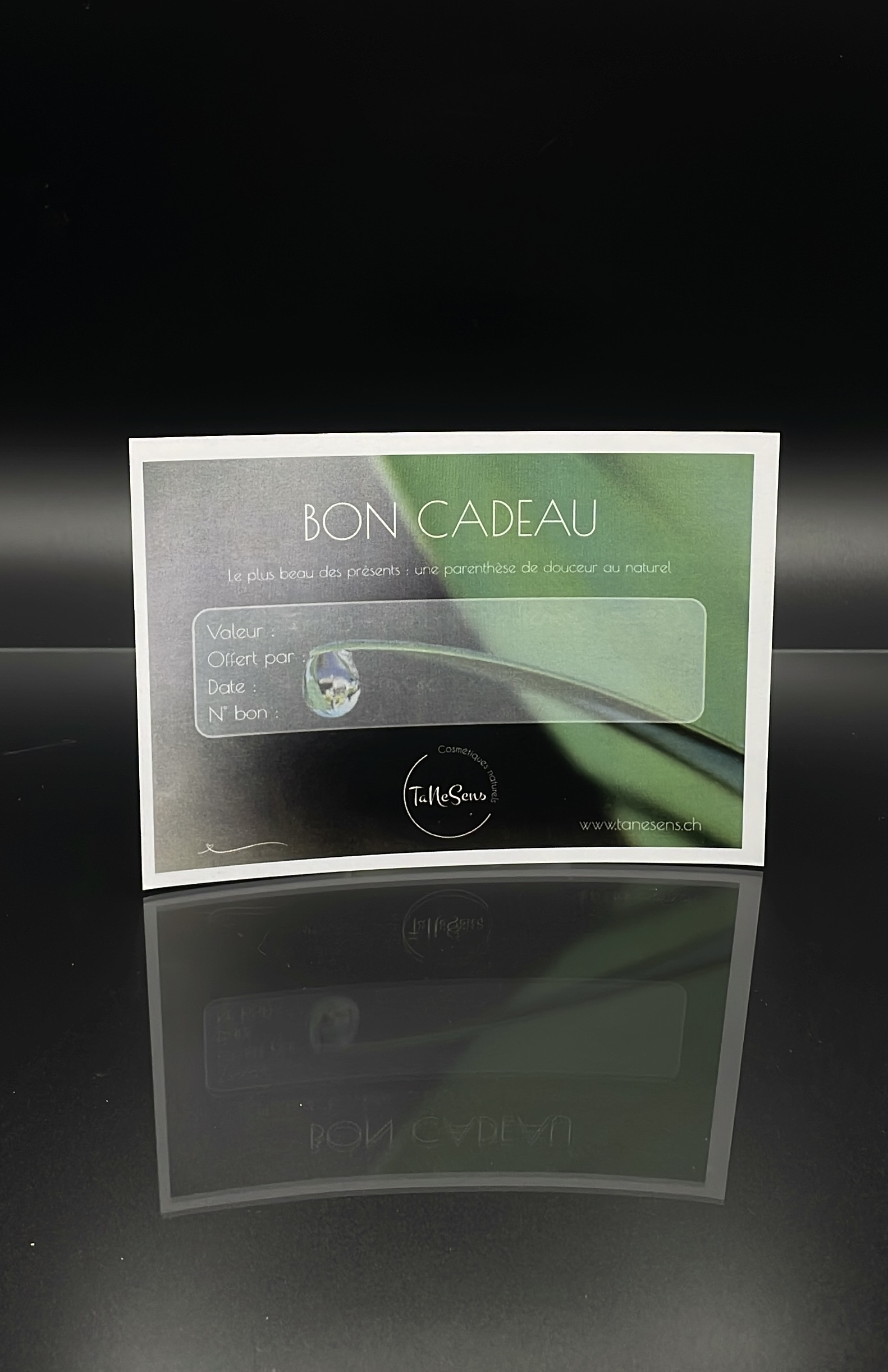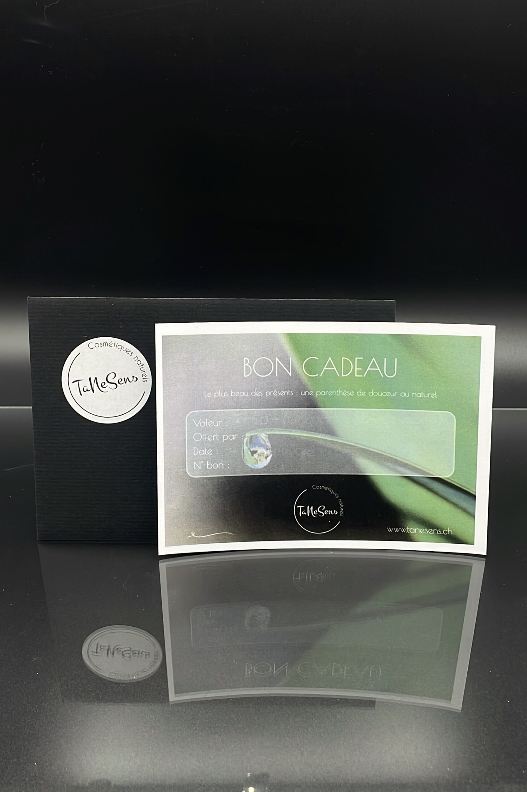 Un bon-cadeau chez TaNeSens Cosmétiques naturels permettra à la personne qui le reçoit de s’offrir le produit cosmétique de son choix !